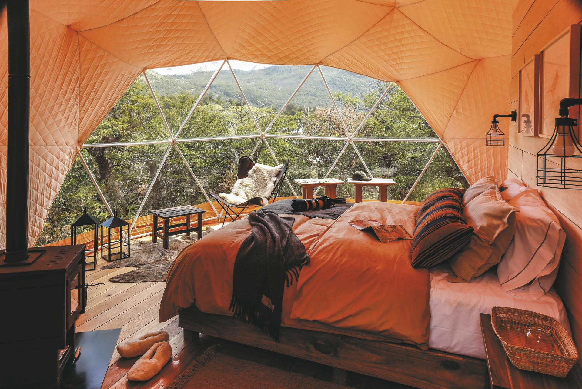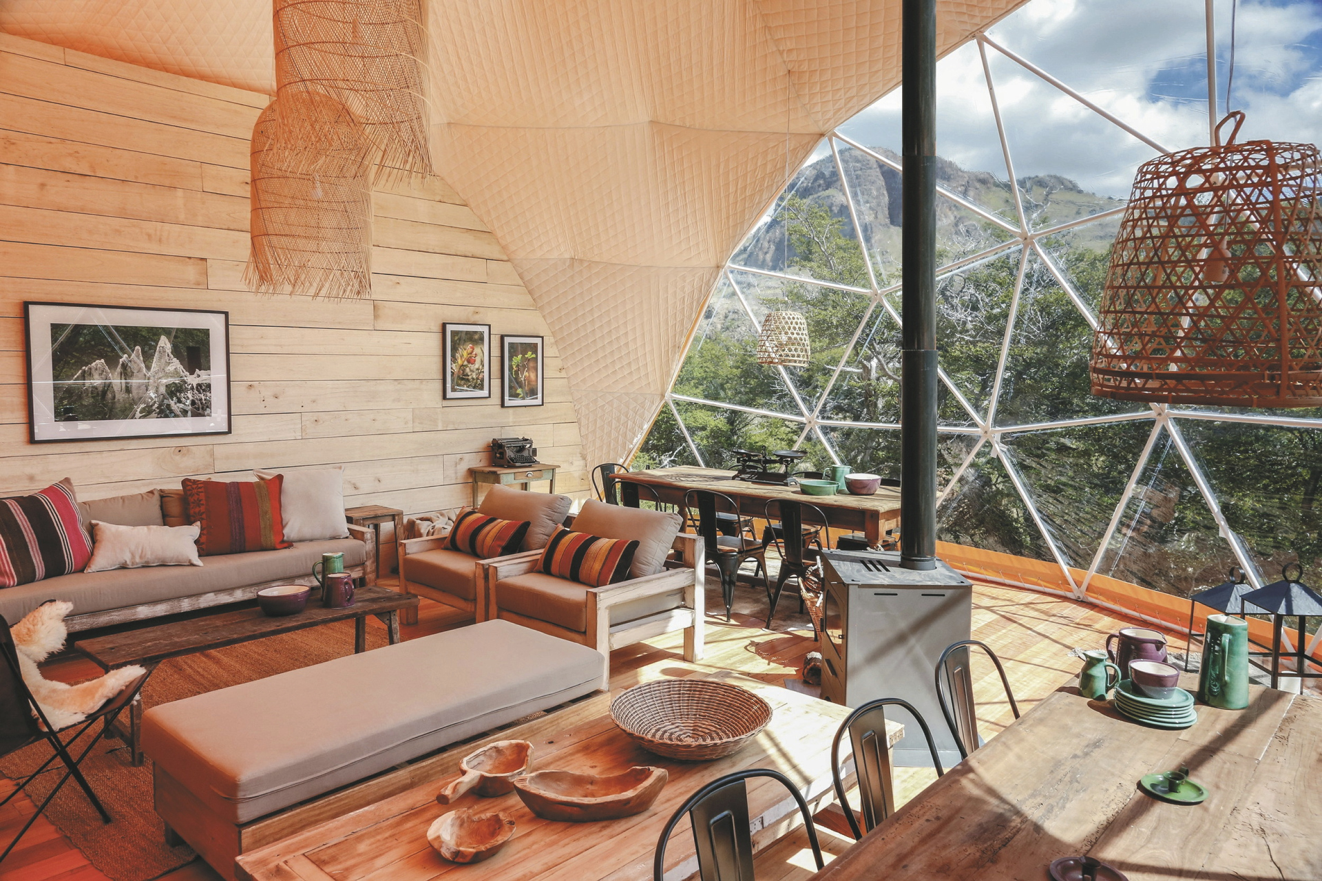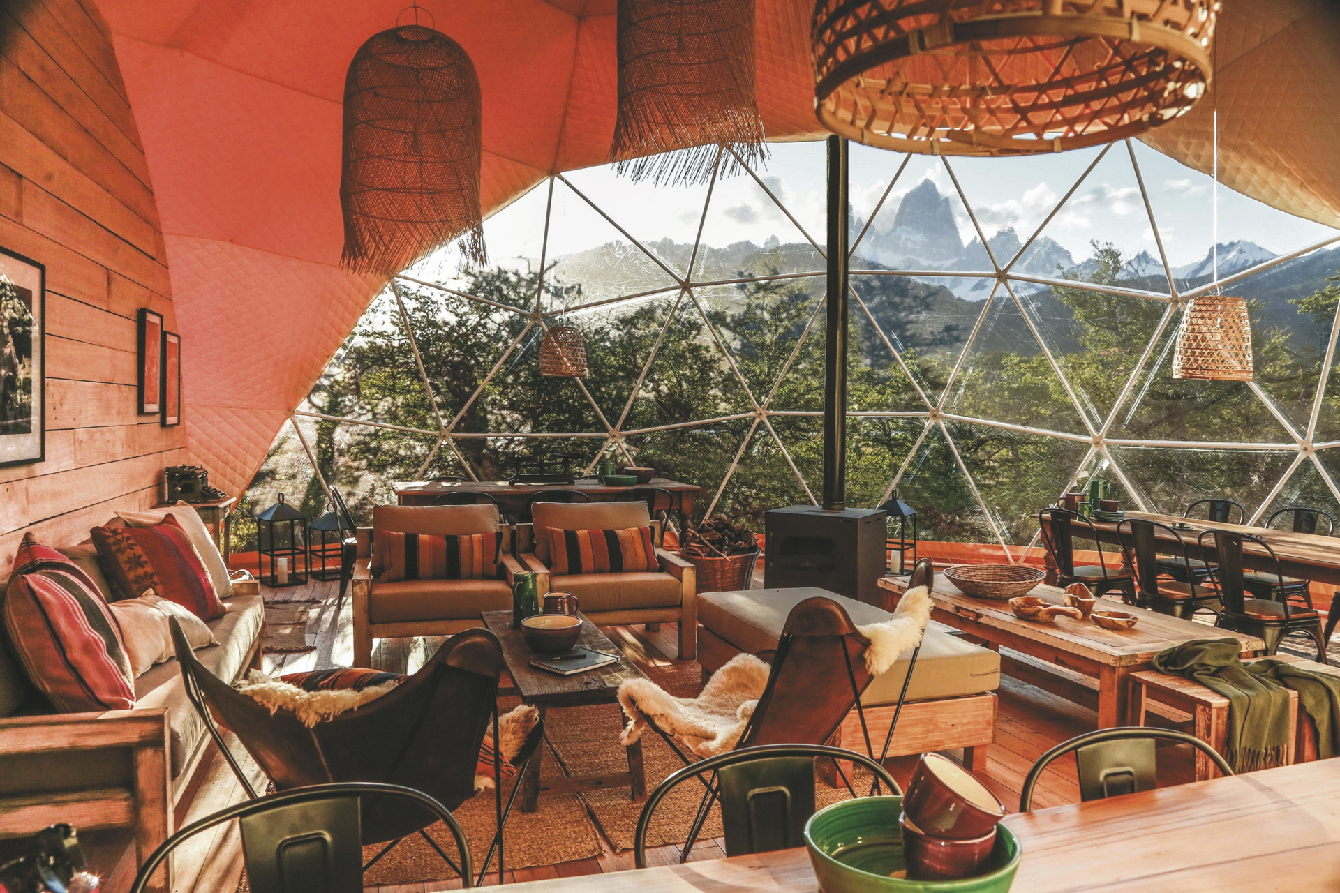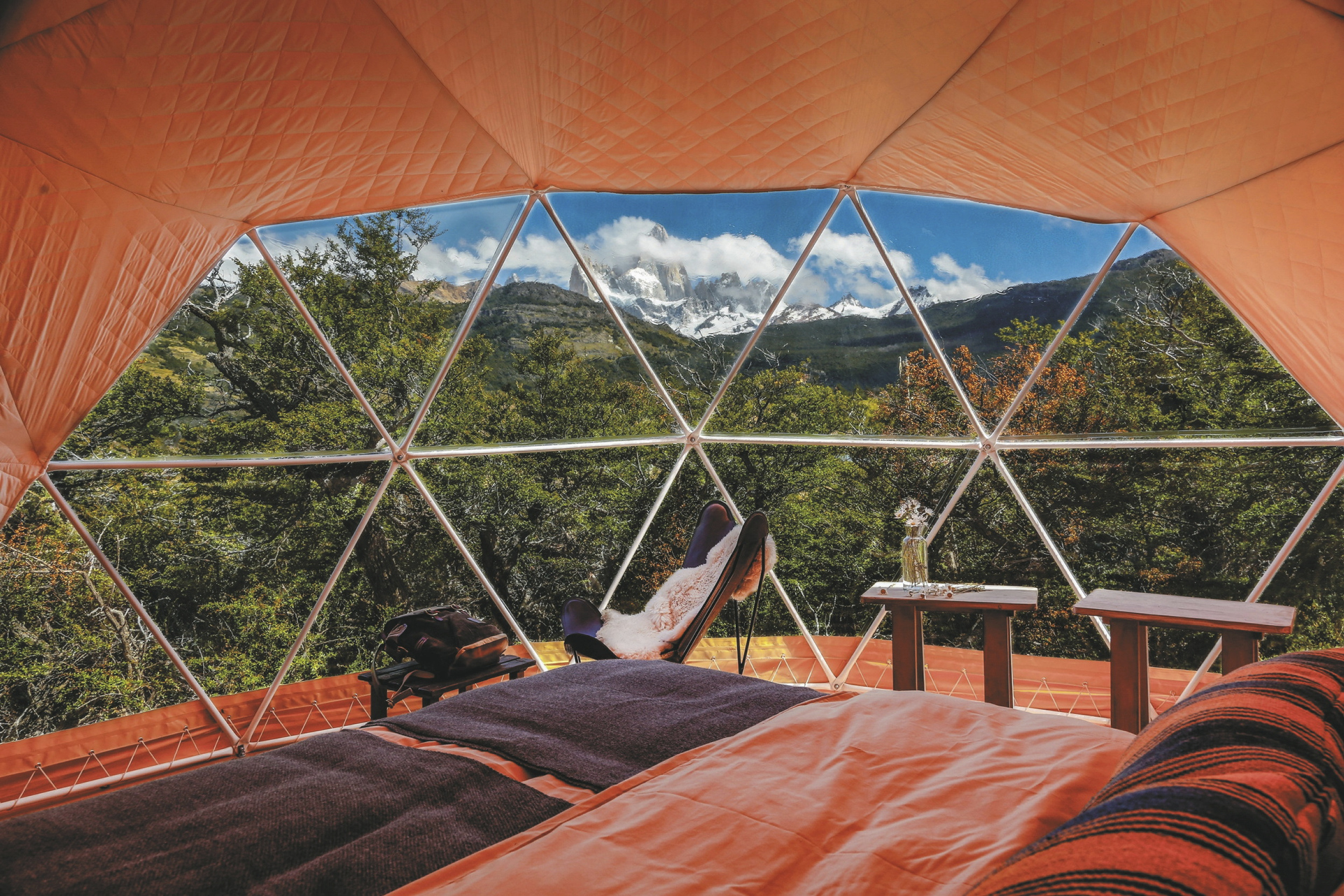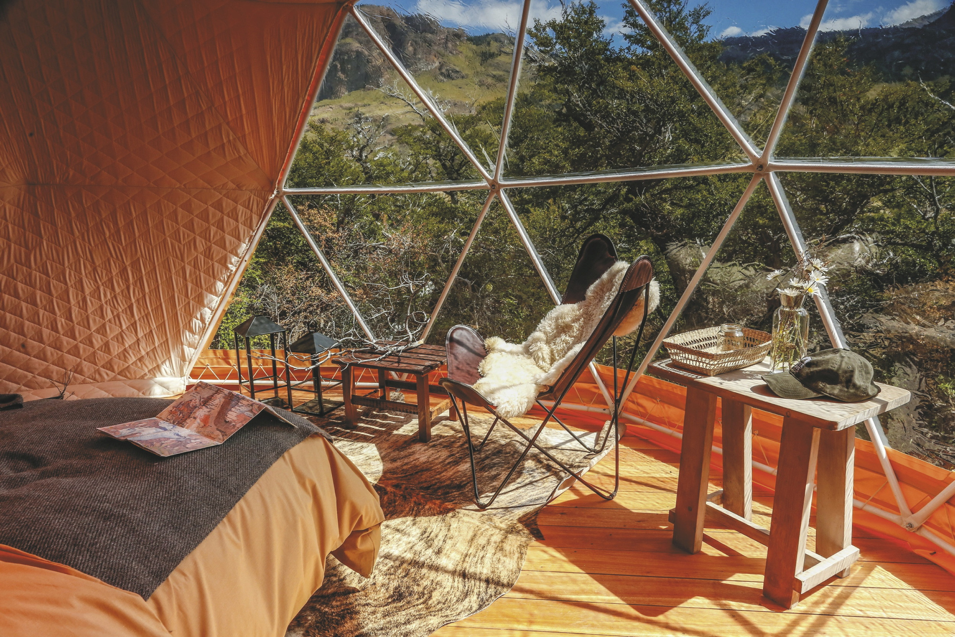 Mit so wenig Eingriff in die Natur wie möglich wurde das Chalten Camp etwas außerhalb von El Chalten errichtet. So können Naturfreunde die herrliche Natur noch intensiver erleben, ohne auf Komfort verzichten zu müssen. Die 8 geräumigen Kuppelzelte (ca. 27 m²) sind einladend und gemütlich eingerichtet und verfügen jeweils über einen Holzfußboden, einen Kamin und ein privates Badezimmer. Das Gemeinschaftszelt (ca. 80 m²) ist das Herzstück des Camps. Eingerichtet im Stil eines patagonischen Hauses lädt es zum Verweilen ein. Genießen Sie vom Camp und aus den großen Panoramafenstern den Blick auf eine unberührte Landschaft und den Gipfel des Fitz Roy.