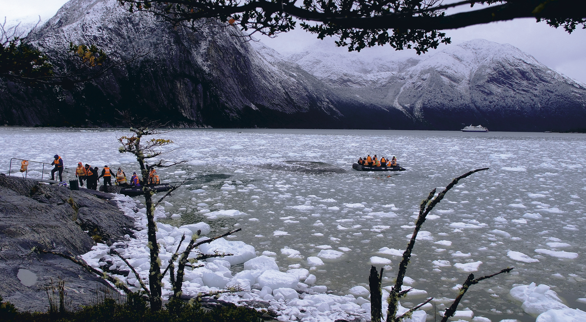 Auch heute kreuzen Sie durch einsame Kanäle, Fjorde und unberührte Landschaften. Zodiacs bringen Sie an Land, wo Sie einen Spaziergang zur Stirnseite des gewaltigen Aguila Gletschers unternehmen. Nachmittags nähern Sie sich in Zodiacs dem Condor Gletscher und erfahren, wie Gletscher sich bilden und welchen Einfluss sie auf die schroffe Geographie Feuerlands haben.