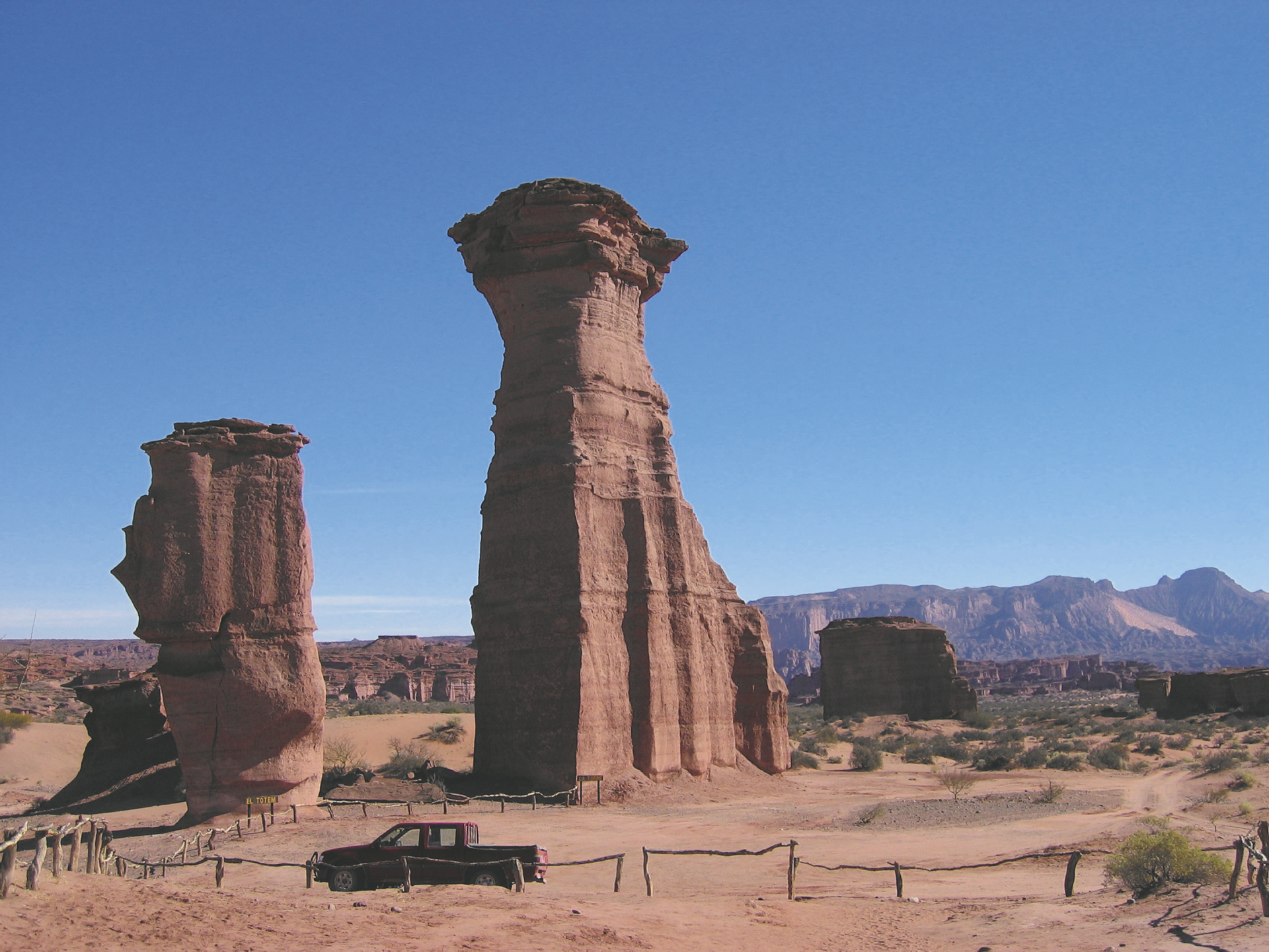 Besuchen Sie heute die Nationalparks Talampaya und Ischigualasto. Talampaya beeindruckt mit seinen majestätischen roten Sandstein-Canyons, die bis zu 150 Meter hoch aufragen. Neben spektakulären geologischen Formationen finden sich hier auch jahrtausendealte Petroglyphen, die von der frühen Besiedlung durch indigene Kulturen zeugen (Der Park kann nur geführt in Kleinbussen erkundet werden (Zahlung direkt vor Ort in argentinischen Pesos). Ischigualasto, auch bekannt als „Valle de la Luna“, fasziniert mit seinen bizarren Felsformationen und einer Landschaft, die an die Oberfläche des Mondes erinnert (Fahrt im eigenen PKW aber im Konvoi, geführt von einem spanischsprechenden Parkranger. Zahlung direkt vor Ort in argentinischen Pesos).