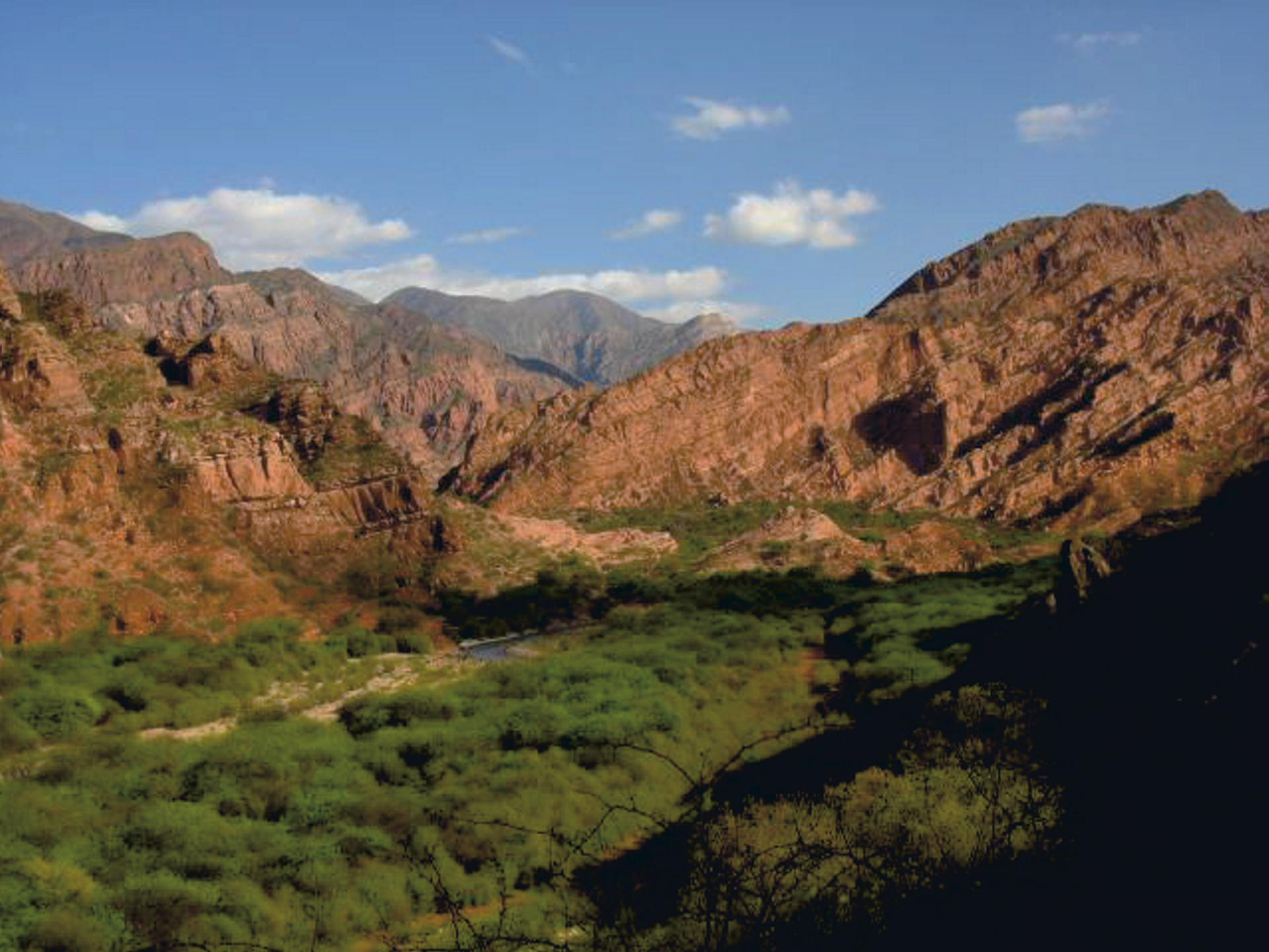 Weiter geht es auf der bekannten Ruta 40 in Richtung Norden. Die erste Etappe führt über die kurvenreiche Cuesta de Miranda zwischen Bergen von intensiver roter Färbung hinunter nach Nonogasta, einer grünen Oase mit Oliven- und Weinanbau. Während der Weiterfahrt nach Belen durchqueren Sie malererische kleine Orte wie Chilecito, Famatima und Londres. Ü: Las Cardas Posada & Spa.