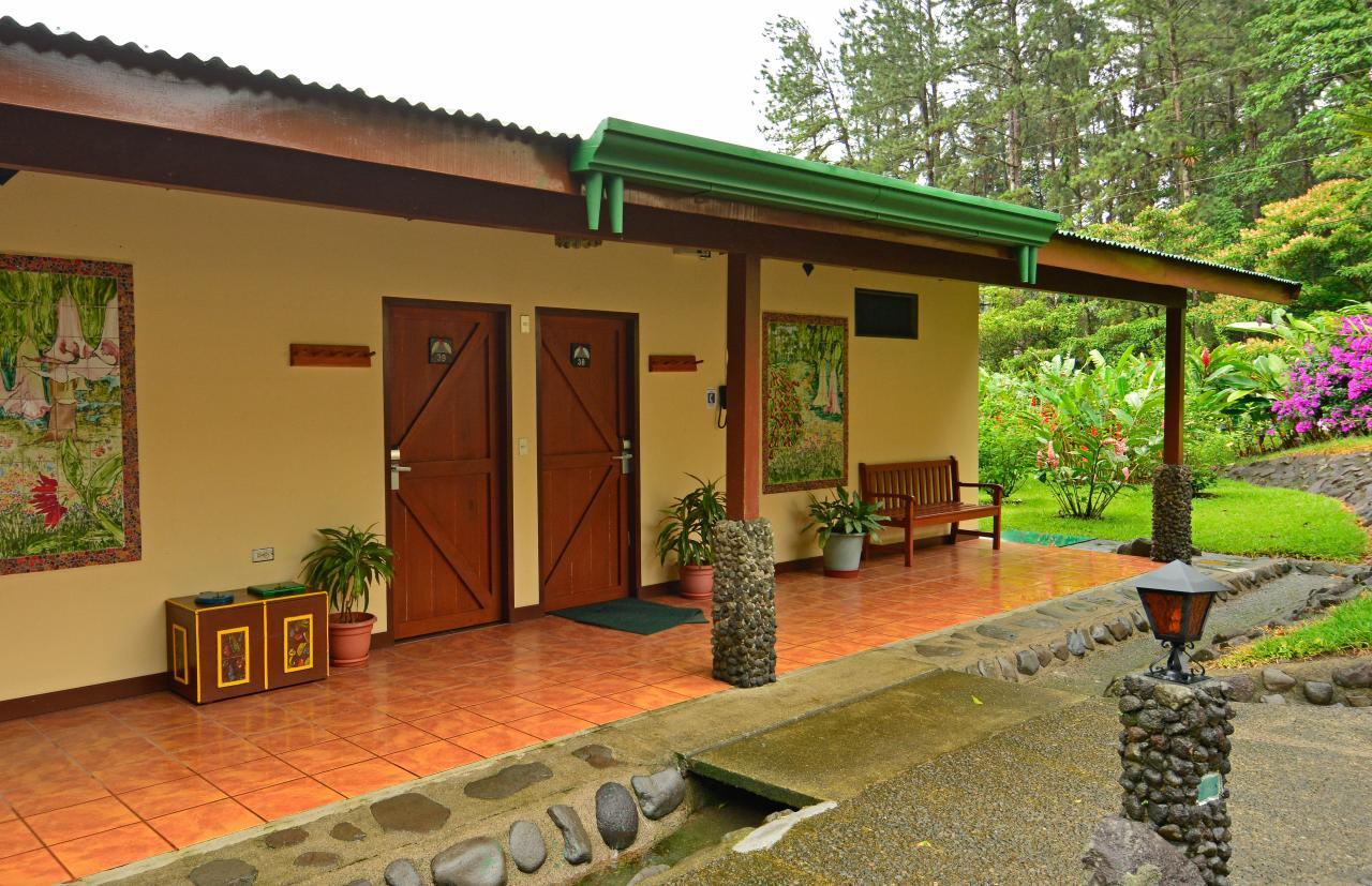 Die geräumigen Zimmer sind mit 2 Queensize-Betten ausgestattet und haben ein privates Badezimmer. Einige von ihnen befinden sich im Gebäude nahe der Rezeption und bieten einen privaten Balkon mit Blick auf den Wald oder den Vulkan Arenal. Andere befinden sich etwa 500 m von der Rezeption entfernt und sind über einen beleuchteten Weg erreichbar. Auch diese Zimmer bieten Balkon mit malerischen Blick (auf den Arenalsee).