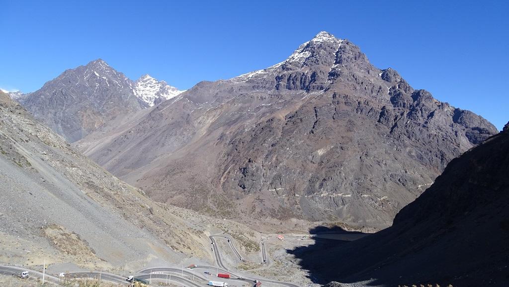 Die Fahrt geht von hier aus Richtung Santiago de Chile. Endlose Lkw-Schlangen quälen sich den Paso Los Libertadores hoch. Die Straße steigt die gesamte Fahrtzeit pausenlos an, jedoch auf fast gerader Strecke ohne großartige Serpentinen. Am Höhepunkt befindet sich eine Aussichtsmöglichkeit auf den höchsten Berg Südamerikas, den Aconcagua (6.962 m). Im Sommer bietet sich eine kurze Wanderung zu den Wasserfällen bzw. dem See an (hierfür benötigt man Bargeld in Argentinischen Pesos).
