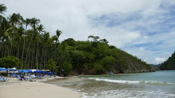 Mein Plan für den nächsten Tag ist ein Bootsausflug nach Tortuga Island. Dort soll der schönste Strand des Landes liegen. Ich wähle das Curú Reserve als Ausgangspunkt und werde zunächst zu einem Schnorchelspot gebracht. Wegen des vielen Regens in den vergangenen Tagen ist das Wasser jedoch leider so trüb, dass ich kaum einen Fisch sehen kann. Der Strand von Tortuga Island bietet hellen Sand und hohe Palmen, also wirklich etwas für’s Auge. Nur leider wurden so viele Liegen aufgestellt für partywillige Gäste und Gruppen, dass der Strand von seiner natürlichen Schönheit verloren hat. Dafür genieße ich die Wellen und die Brandung bei einem Bad und amüsiere mich über den ein oder anderen Partygast. Das Meer und die Bootsfahrt selbst haben sich heute allemal gelohnt.