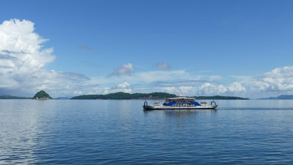 In knapp 1,5 Stunden fahre ich aussichtsreich über den Golf von Nicoya. Auch mit Online-Buchung sollte man mind. 1 Stunde vor Abfahrt am Fähranleger sein. Die Fähren der Gesellschaft Tambor sind recht modern und bieten zahlreiche Sitzmöglichkeiten mit Blick in alle Richtungen sowie mehr und weniger windgeschützte Plätze. Außerdem gibt es einen Kiosk mit gutem Kaffee, Snacks und Süßigkeiten an Bord.