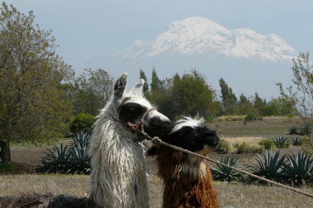Der Himmel bleibt selbst am Nachmittag wolkenlos und so entscheidet sich unser Reiseleiter für einen Umweg zum Chimborazo, dem mit 6.310 m höchsten Berg Ecuadors.