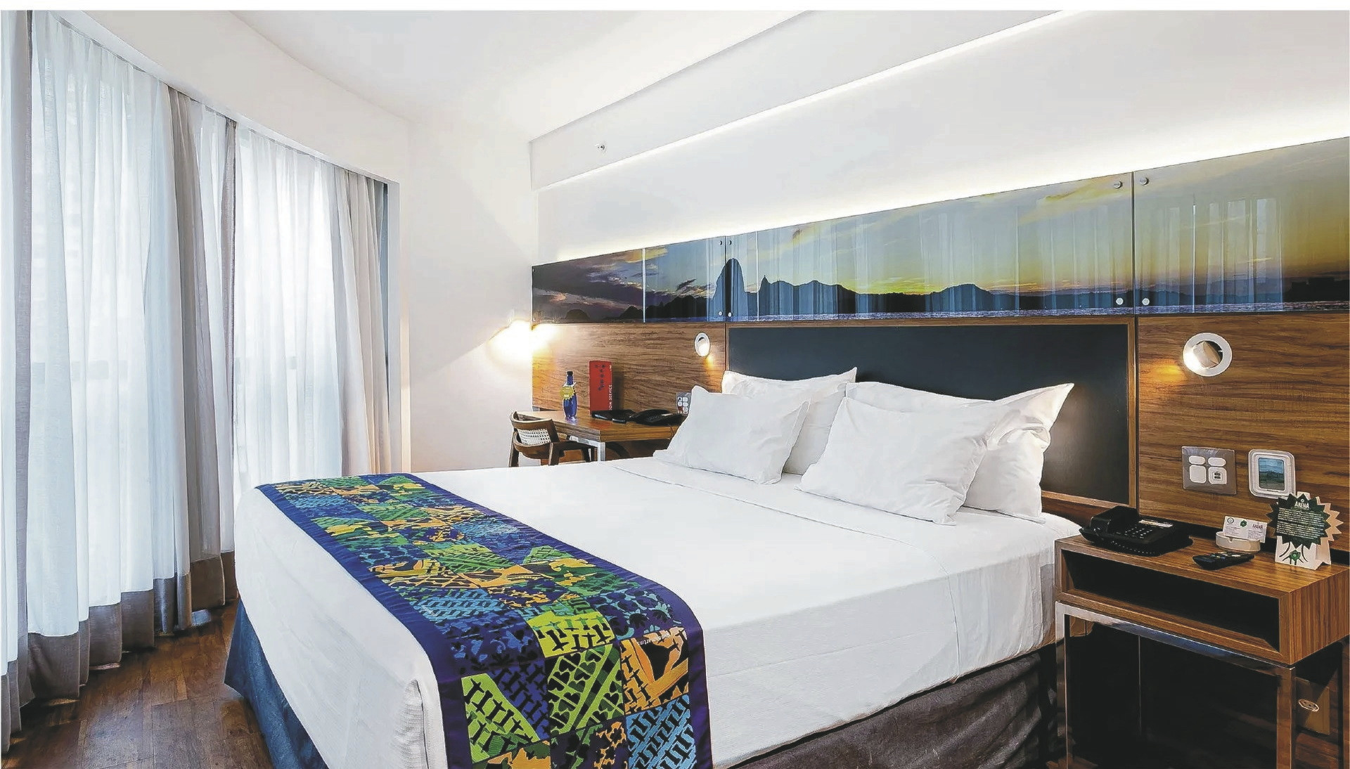 Insgesamt verfügt das Hotel über 164 Zimmer. Die Standardzimmer sind ausgestattet sind mit Klimaanlage, Minibar, TV, Telefon, WLAN, Föhn, Parkett und einem Badezimmer mit DU/WC. Sie haben Ausblick auf die Gustavo Sampaio Straße.