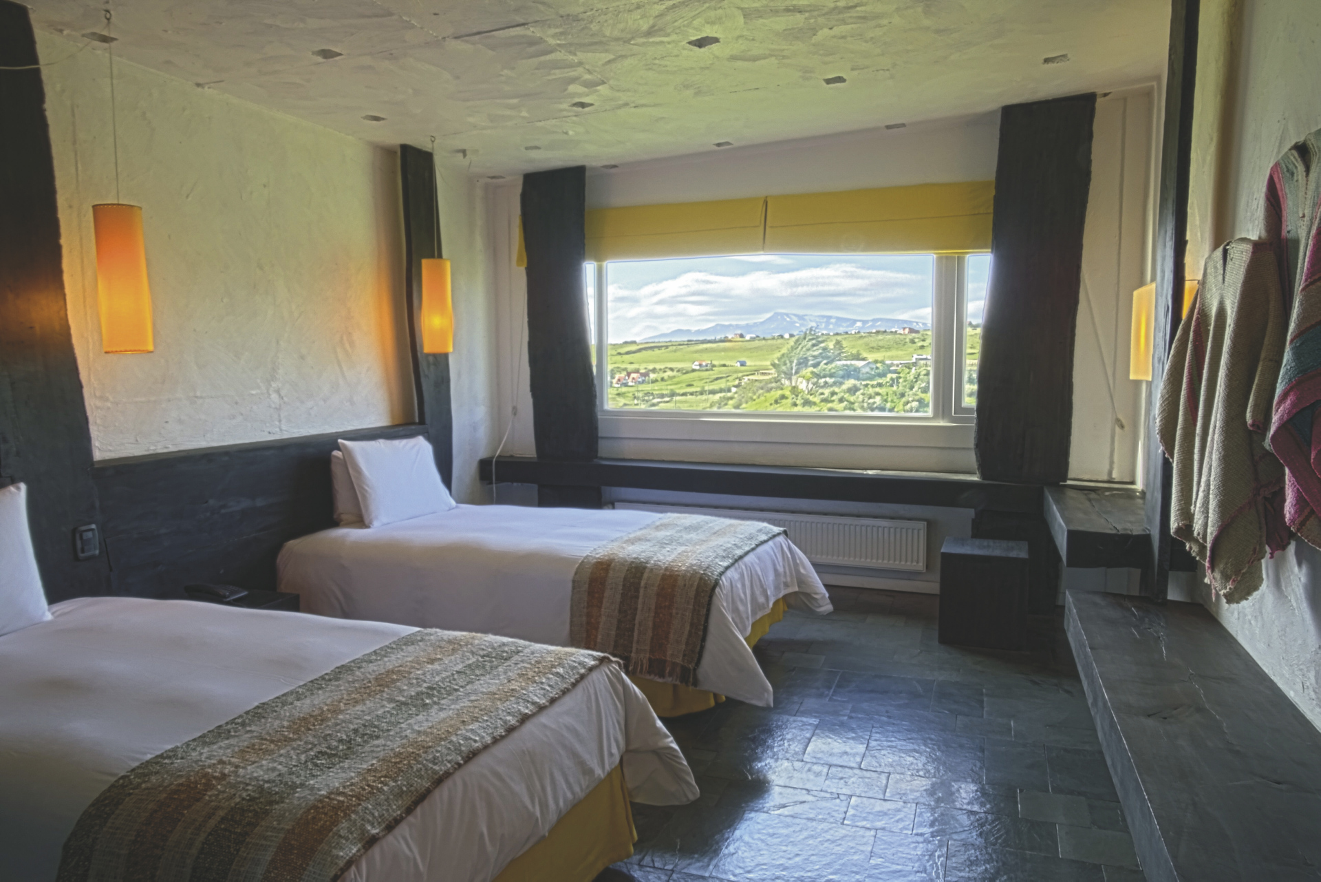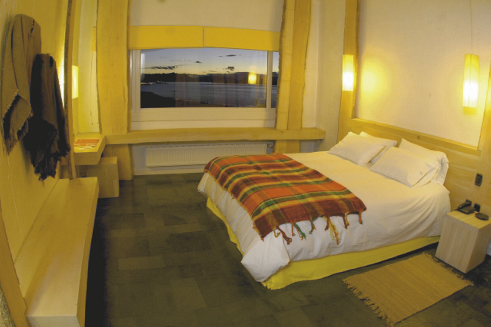Der typische Stil Patagoniens findet sich in der Einrichtung der 72 Zimmer wieder und schafft eine wohnliche Atmosphäre. Sie verfügen über Telefon, Safe, Heizung, Föhn, WLAN, ein Bad mit DU/WC und große Fenster mit Ausblicken auf den Fjord und die Berge.