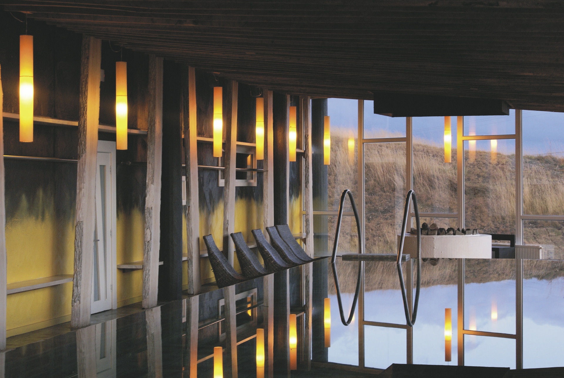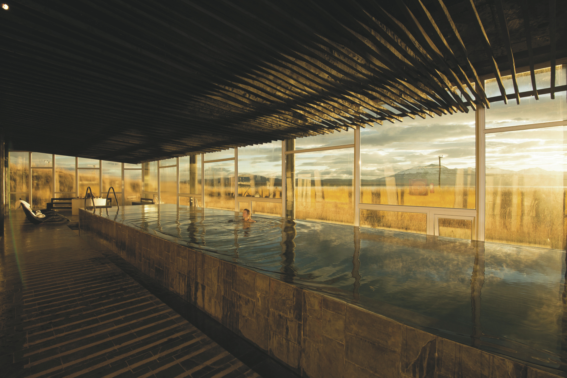 Das Hotel wurde mit dem Ziel erbaut, die Magie Patagoniens erlebbar und fühlbar zu machen. Die außergewöhnliche Architektur ist daher inspiriert von alten patagonischen Schafstallungen. Handwerkskunst, Textilien, Feuerstellen und Sitzmöglichkeiten schaffen ein gemütliches Ambiente, große Fenster stellen den Kontakt zur Natur Patagoniens her. Viele Ausflüge stehen zur Wahl, um in Kleingruppen die Gegend zu Fuß, per Mountainbike, Boot oder während eines Ausritts zu erkunden. Im Restaurant werden Sie mit schmackhaften Gerichten verwöhnt, im Spa können Sie entspannen.