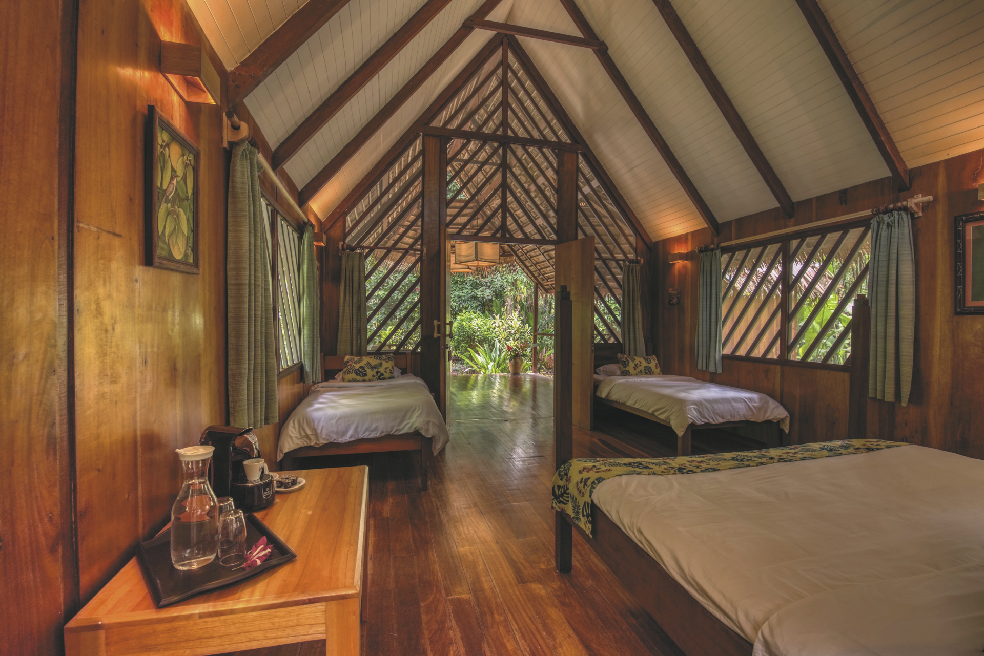 Das Hotel ist umgeben von sattgrünen Bäumen, Blumen und üppiger Vegetation. Die rustikal-elegante Gestaltung fügt sich perfekt ein in die Naturkulisse. Am Morgen werden Sie von den Brüllaffen geweckt, und wahrscheinlich werden Sie auch ein paar umherstreifende Agutis sehen können.