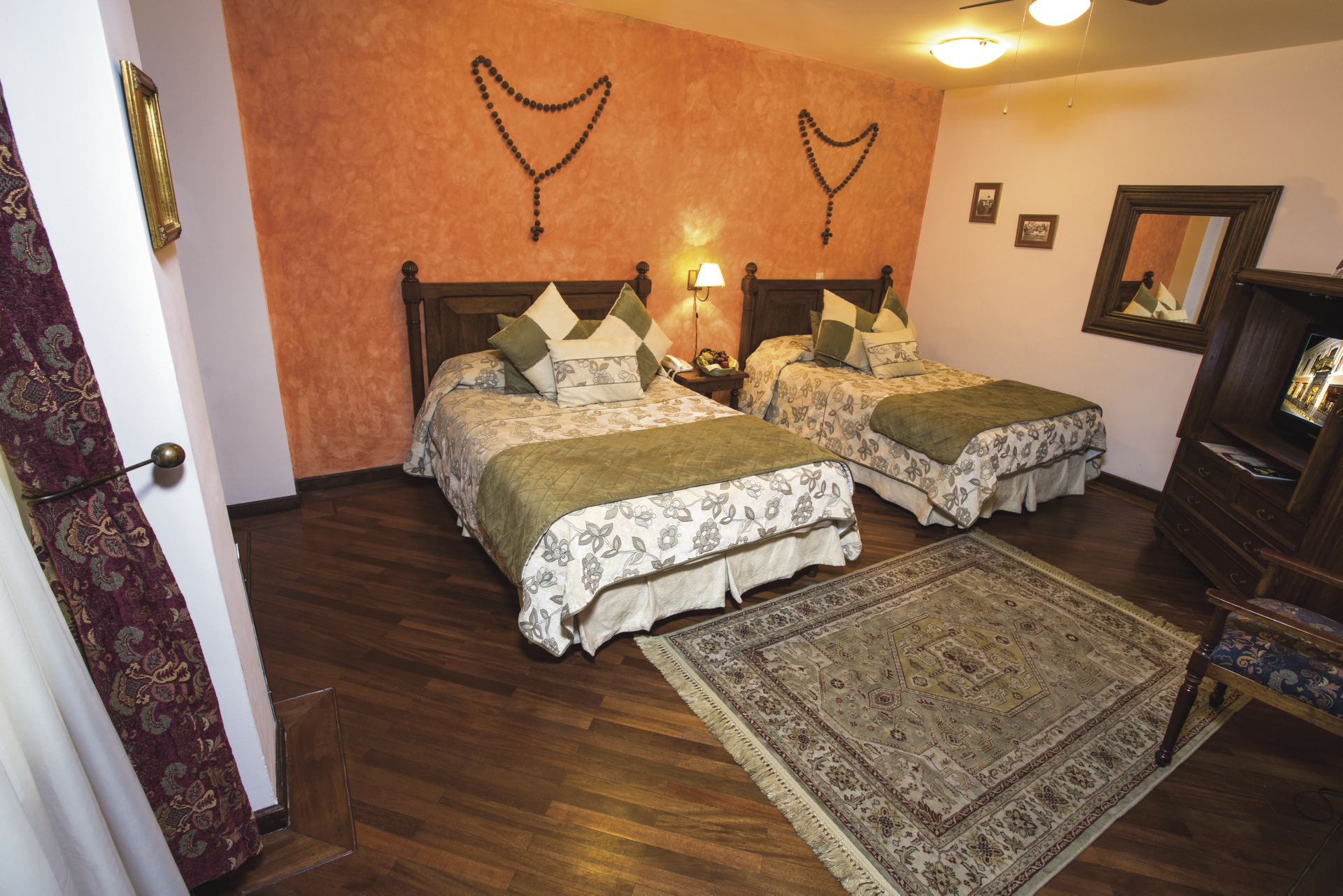 Die 32 Zimmer sind im Kolonialstil eingerichtet und ausgestattet mit Kabel-TV, Telefon, Bad mit Dusche/WC, WLAN.