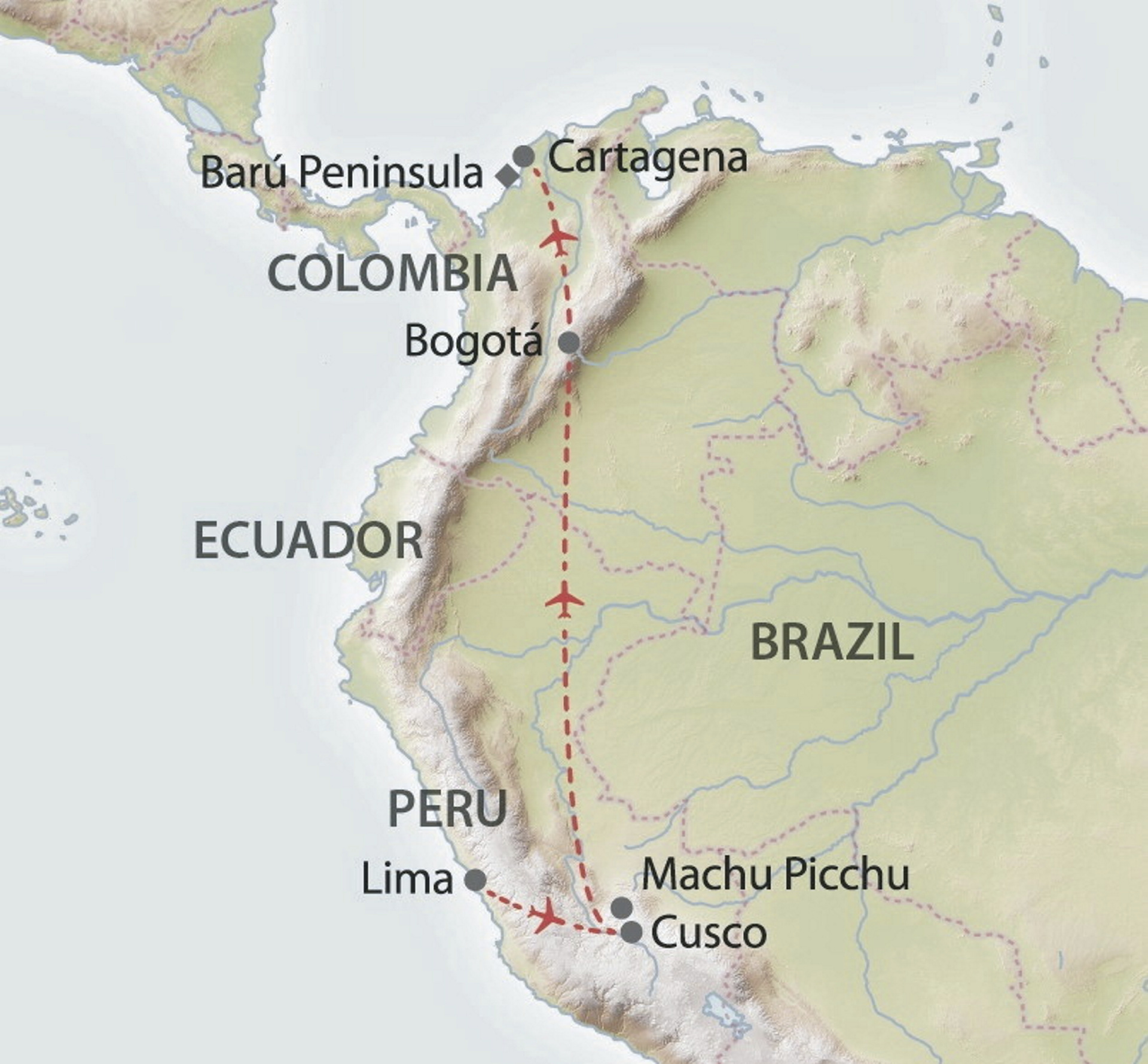 Peru und Kolumbien lassen sich hervorragend miteinander kombinieren. Peru, das "Königreich der Sonne", ist ein Land antiker Kulturen, gelebter Traditionen und beeindruckenden Landschaften. Kolumbien wartet auf mit Fischerdörfern, tropischen Stränden, Küstengebirgen und bunten Kolonialstädten. Diese Reise kombiniert Höhepunkte aus beiden Ländern. Geheimnisvolle Inkastätten, gewaltige Berglandschaften, Kolonialstädte, eine beeindruckende Natur und am Ende der Reise entspannte Tage in einem schönen Hotel.