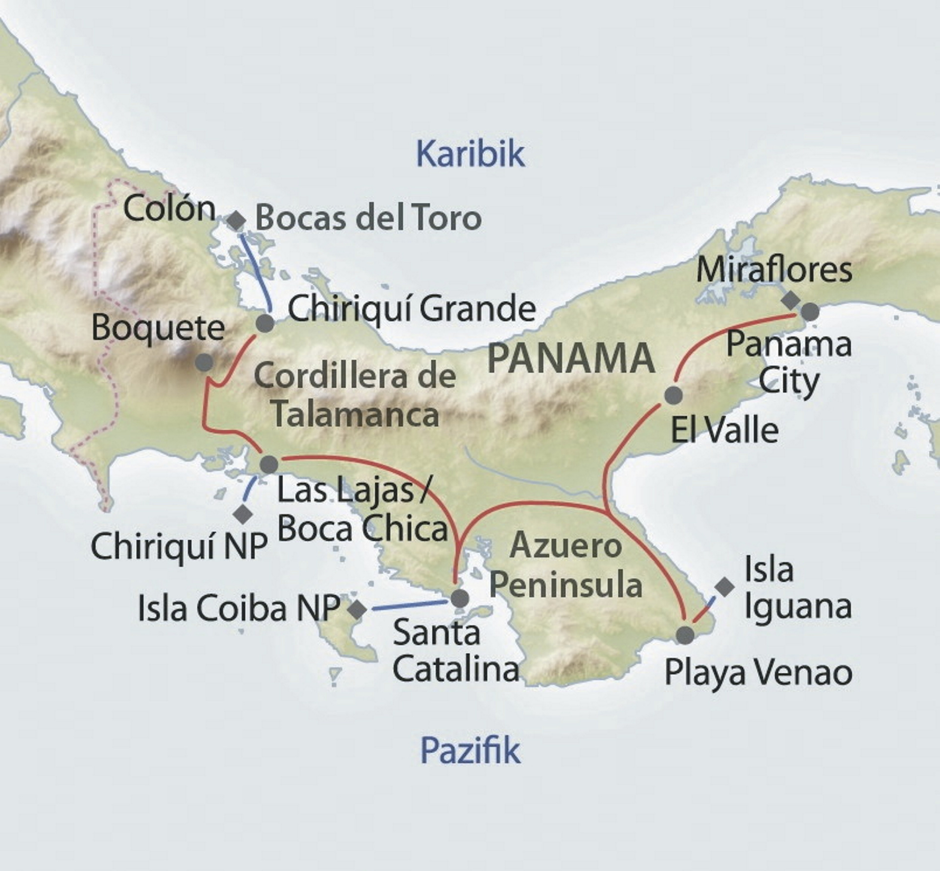 Üppige Flora und Fauna, ein vielfältiges kulturelles Leben und einsame Strände erwarten Sie bei dieser Reise. Entdecken Sie die Schönheiten Panamas in Ihrem eigenen Tempo. Entlang des Pazifiks laden weiße, einsame Strände zu einem Bad ein. Spannend ist auch eine Wanderung durch den Nebelwald Boquete. Am Ende der Reise erreichen Sie Bocas del Toro, wo sie einen entspannten Badeaufenthalt an einem der wohl schönsten Orte Panamas anschließen können.