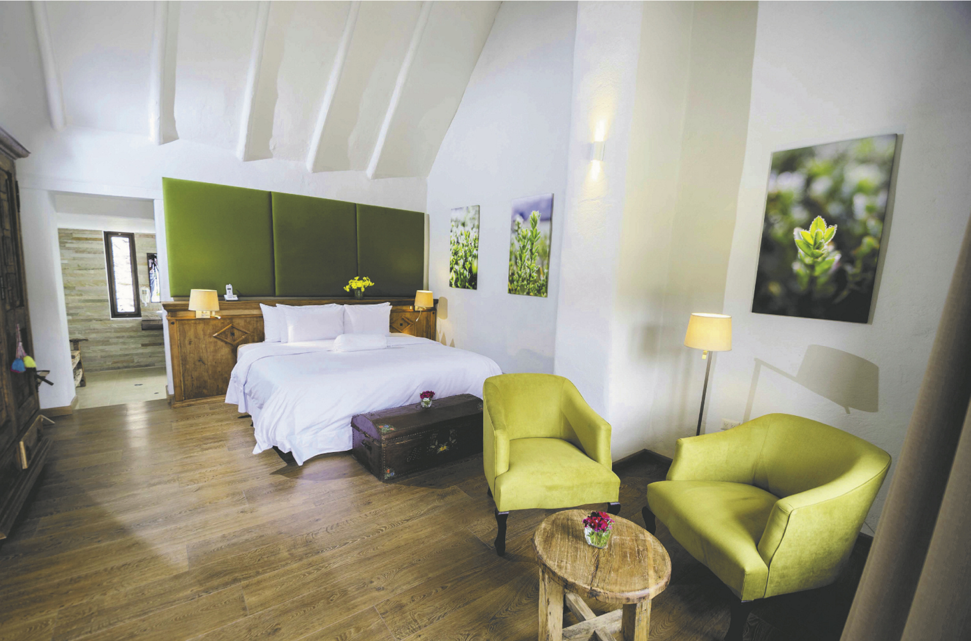 Insgesamt 45 Zimmer & Suiten verteilen sich auf dem Gelände. Die Standardzimmer sind rustikal, aber gemütlich eingerichtet und bieten Heizung, Safe, ein Bad mit DU/WC und eine kleine Terrasse. Die Adobe Junior Suiten sind moderner und geräumiger.